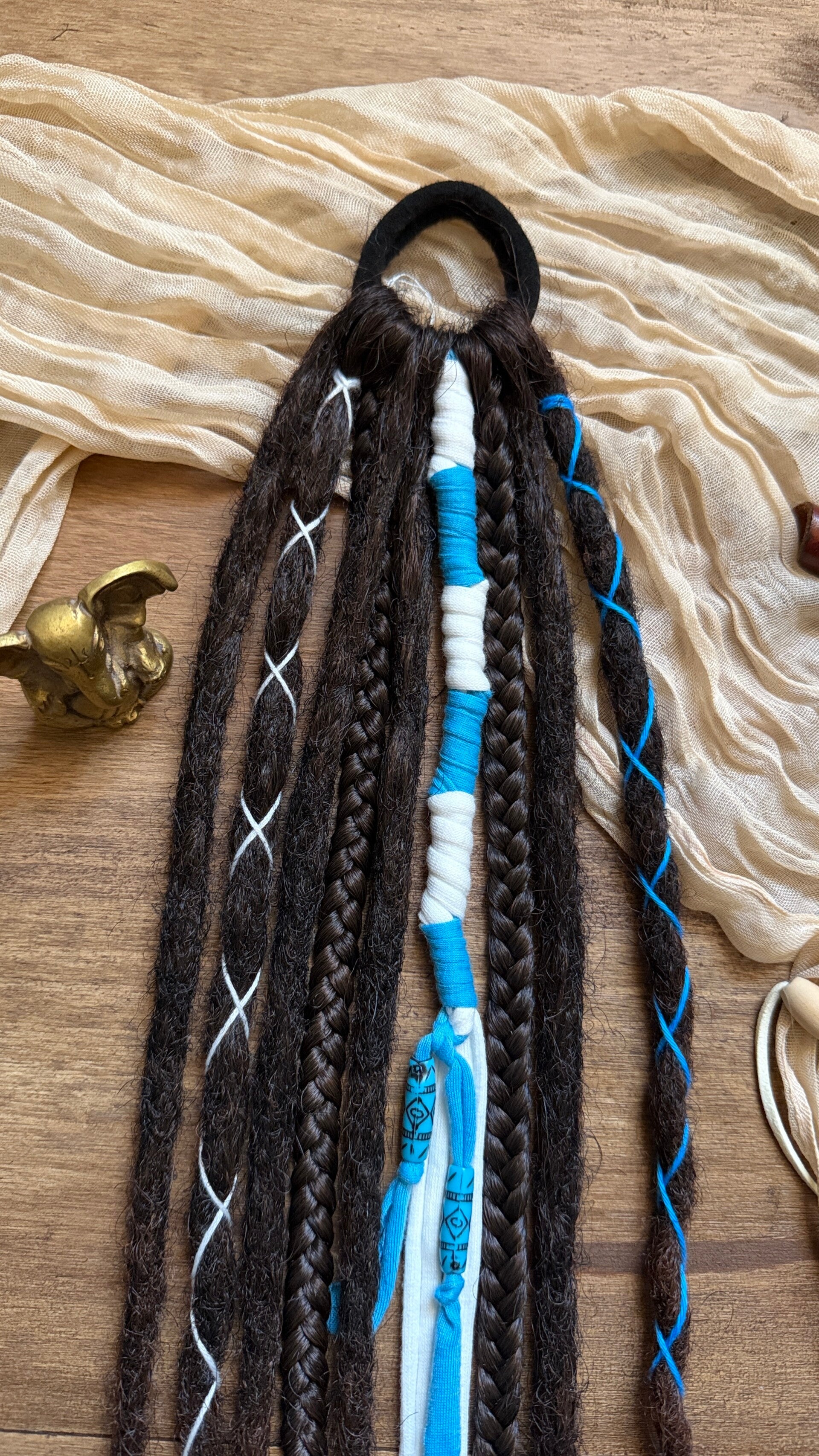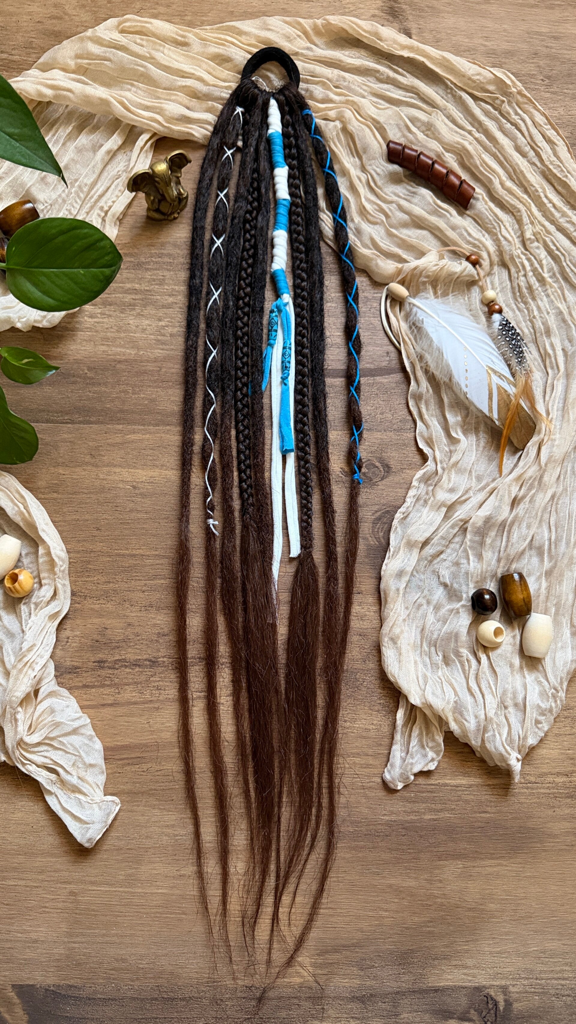 Châtain dégradé réf 1: 8 locks+2 tresses+1 atéba 60 cm posées sur un chouchou en jersey